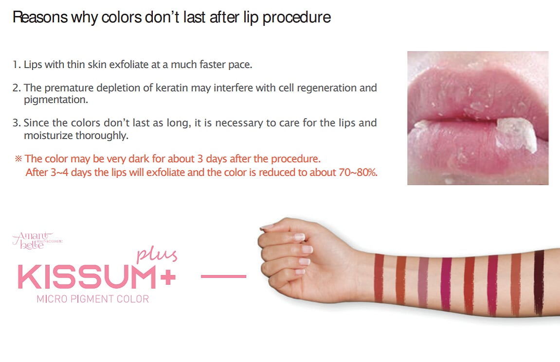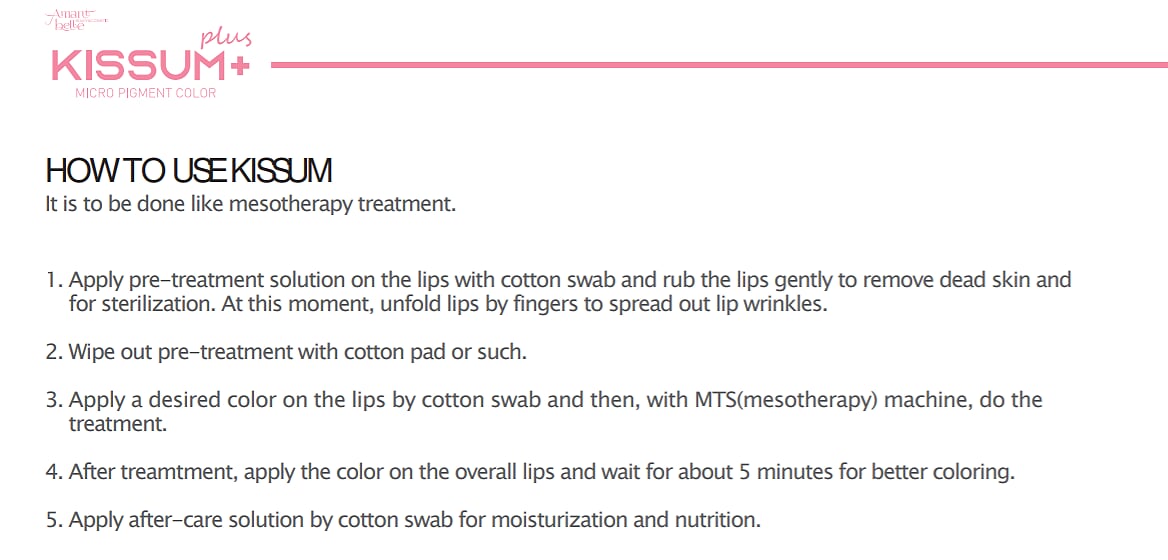 - Apply a desired color on the lips by cotton swab and then, with MTS(mesotherapy) machine, do the treatment.