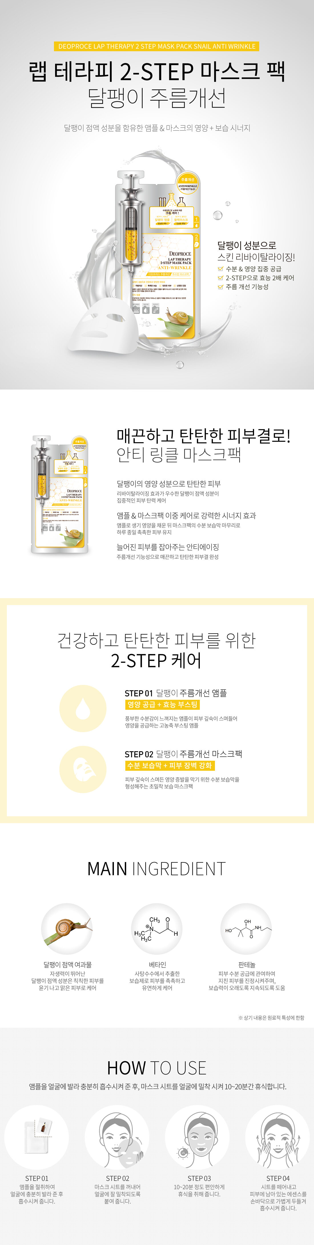 Lap Therapy Snail Anti-Wrinkle Ampoule Mask Pack Deoproce 1box